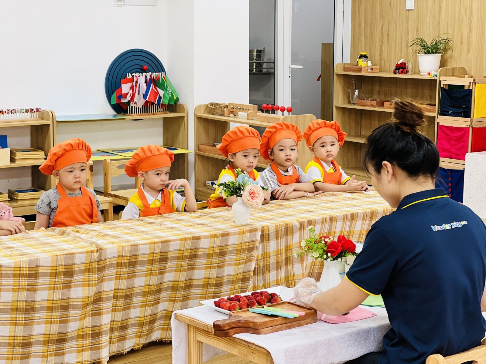 Hôm nay các con sẽ được hóa thân thành các đầu bếp nhí siêu dễ thương, và tự làm món phụ sáng:" Sữa chua dâu tây" nhé! Thành quả của buổi học là được thưởng thức món thức uống do chính tay mình làm ra, thú vị biết bao đúng không nào ??? Mời Ba/ Mẹ cũng xem Bé nhà mình trổ tài nào